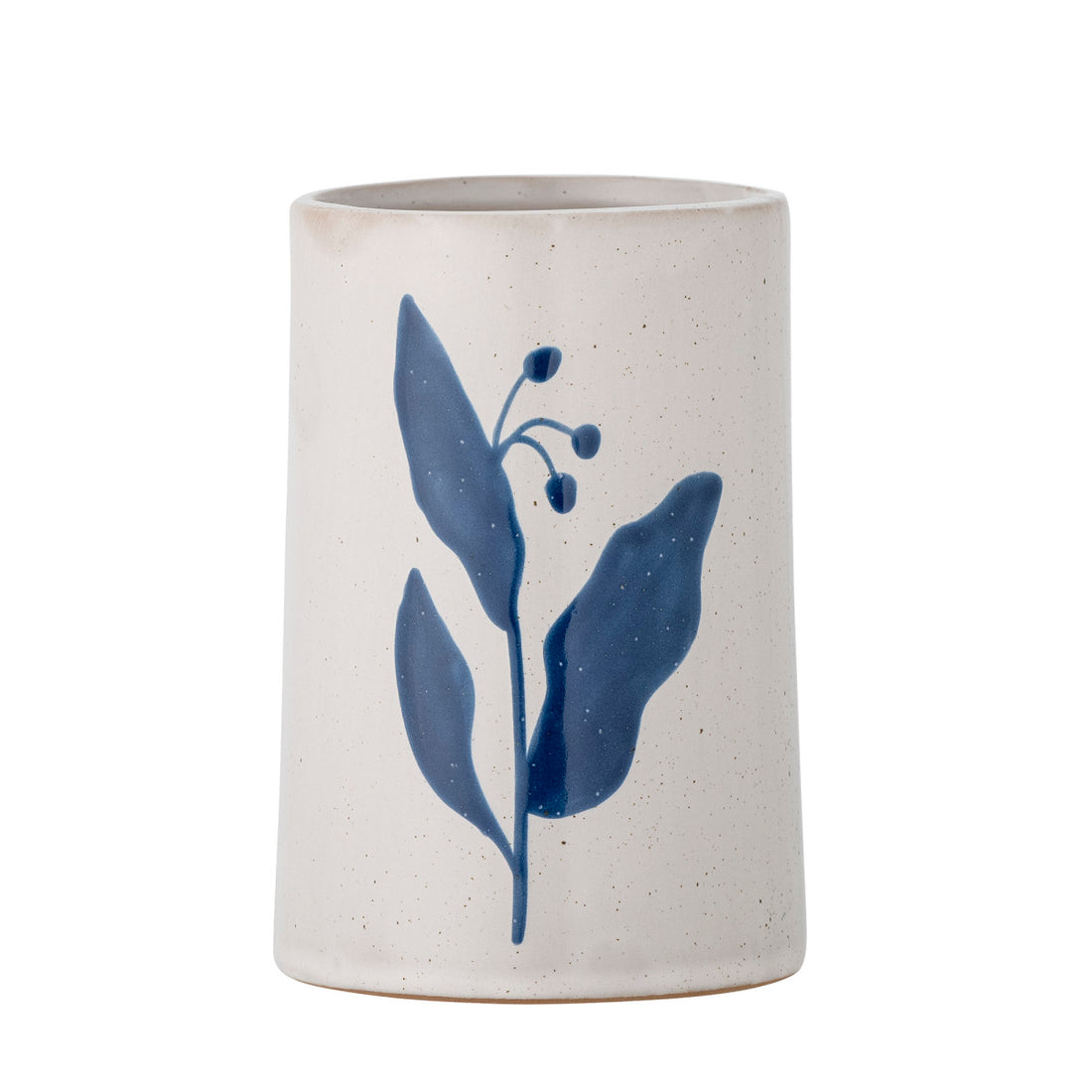 כוס ה-Aurora מבית Bloomingville עשויה חרס. הכוס לחדר הרחצה מצוירת ביד עם מוטיב פרחוני כחול...