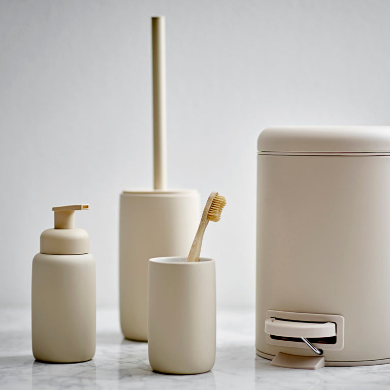 דיספנסר לסבון מקציף מדגם mono של המותג הדני sodahl, עשוי קרמיקה. הסדרה כוללת גם מברשת חלופית לאסלה, מחזיק למברשת אסלה תואם, מחזיק מברשת שיניים ופח לאמבטיה. יש למלא 70% סבון, 20% מים.