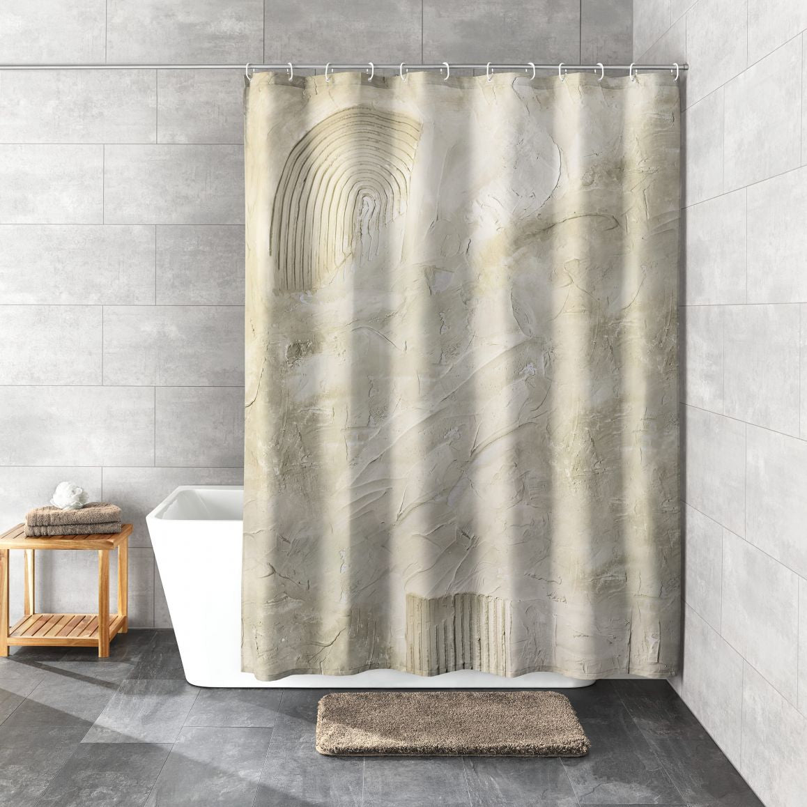 וילון פוליאסטר לאמבטיה מסדרת Art מבית Kleine Wolke. משלב עיצוב טבעי ונעים עם פונקציונליות יומיומית. הגימור שלו מזכיר במרקם טיח דקורטיבי, ומוסיף תחושת רוגע וחום לכל חדר רחצה. גודלו הנדיב מספק הגנה מיטבית מפני התזות מים, ובזכות הציפוי הדוחה מים – הוא שומר על הסביבה יבשה. לולאות מתכת מחוזקות מאפשרות תלייה קלה ובטוחה, והמשקולת בשוליים מוודאת שהווילון ייפול בצורה יפה ונעימה.