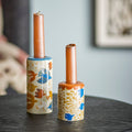 פמוטי Anniversary מבית Bloomingville מגיעים כסט יוקרתי של שני פמוטים ומוסיפים נוכחות תוססת ומעוצבת לבית. הפמוטים עשויים חרס ומתאפיינים במוטיב גרפי מודפס בגוונים חמים. הגבהים השונים והעיצוב האיורי הייחודי יוצרים אפקט דקורטיבי ודינמי מושלם, והם נראים מרהיב בין אם מונחים יחד או לחוד כפריטי עיצוב משלימים. מושלמים להארת השולחן או שידה עם נגיעה של צבע וסטייל.