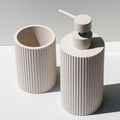 כוס למברשות שיניים Cannes מבית Essentials, בעיצוב אלגנטי עם קווים מחורצים שמוסיפים עומק וטקסטורה ייחודית. אידיאלית לאחסון מברשות שיניים וחפצי אמבטיה קטנים, ומשלבת פרקטיות יומיומית עם מראה עכשווי ומוקפד.