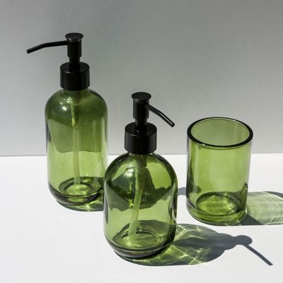 כוס למברשת שיניים Martin מבית Essentials, עשויה זכוכית איכותית בגוון ירוק מעושן, שמוסיפה מראה רענן ונקי לכל חדר רחצה. מתאימה לאחסון מברשות שיניים, משחת שיניים או פריטים קטנים נוספים, ומשלבת שימושיות יומיומית עם עיצוב אלגנטי.