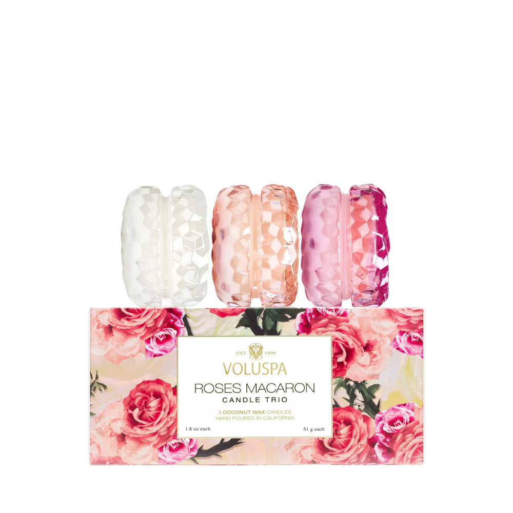 מאז מתנה המורכב בשלישיית נרות בכלי מקרון לסדרת Roses של המותג האמריקאי המוביל Voluspa.