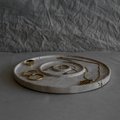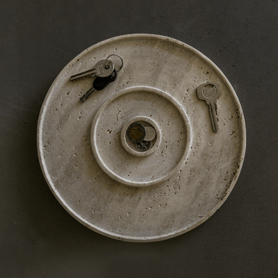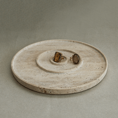 מגש האורגנייזר Fabrizio מבית Studio Marmo עשוי משיש טרוורטין טבעי ומעוצב בקווים נקיים עם שתי טבעות פנימיות, היוצרות חלוקה הרמונית בין משטח למשטח. העיצוב החכם מאפשר שימוש מגוון - כל חלק יכול לשמש למטרה שונה, תוך שמירה על סדר וארגון אסתטי ומדויק.