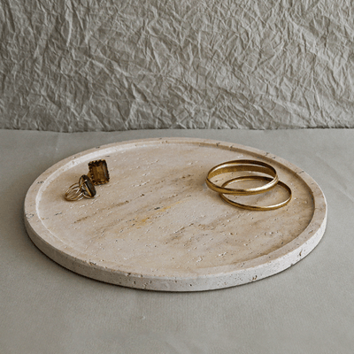 מגש Caesar מבית Studio Marmo הוא פריט חובה לכל חובבי העיצוב והאסתטיקה. בעל שוליים נמוכים ומשטח עשוי שיש טרוורטין טבעי, הוא משלב עמידות, פשטות ואלגנטיות בלתי מתאמצת.