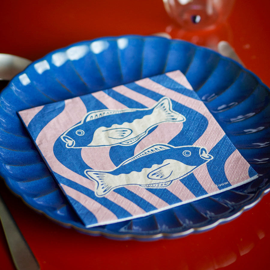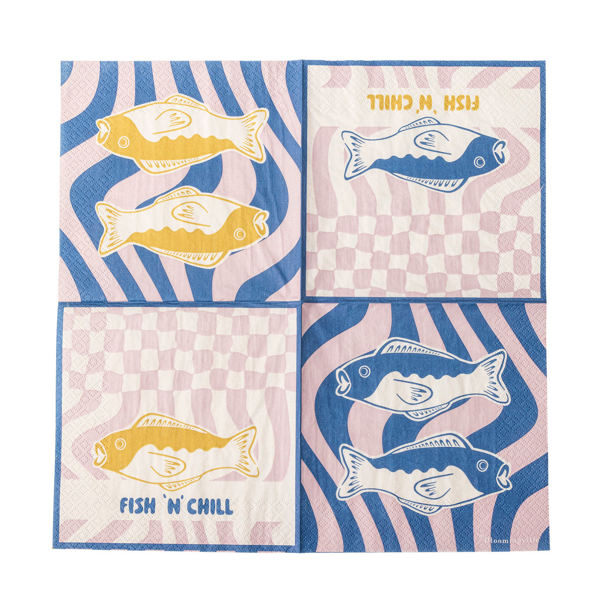 מפיות Remy של המותג Bloomingville מביאות טוויסט עיצובי ושמח לשולחן האירוח. המפיות עשויות נייר באישור FSC® (לשמירה על יערות וקיימות) וכוללות מוטיב דגים גרפיים בשילוב טקסט וצבעוניות חיה ונועזת. העיצוב היצירתי והאיכותי שלהן הופך אותן לאידיאליות לשדרוג כל שולחן, מאירוח יומיומי ועד אירועים חגיגיים. מגיעות באריזה של 20 יחידות.
