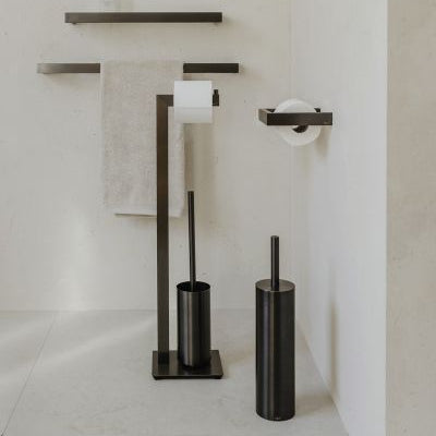 מברשת האסלה TUBO מבית ZACK הגרמנית היא שילוב מושלם של אלגנטיות מאופקת ופרקטיקה. המברשת שוכנת בתוך מיכל סגור ודיסקרטי העשוי פלדת אל-חלד 18/10 בציפוי PVD גרפיט יוקרתי, הכולל שכבת Anti-fingerprint לדחיית טביעות אצבע. המבנה הכבד של המעמד מבטיח יציבות מקסימלית על הרצפה. לנוחות תחזוקה מושלמת, המעמד כולל מיכל פלסטיק פנימי נשלף לניקוי קל, וראש המברשת ניתן להחלפה במידת הצורך. פריט חובה לחדר רחצה מודרני המקפיד על קווים נקיים.