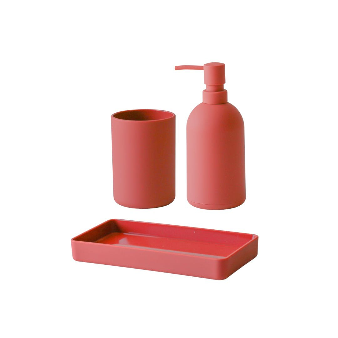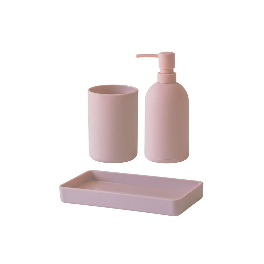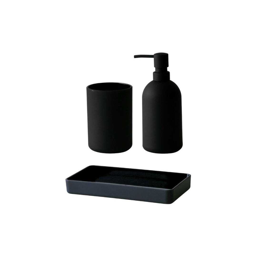 סט אביזרי אמבטיה 3 חלקים מסדרת PORTO בעיצוב מינימליסטי ונקי. הסדרה משלבת פונקציונליות יומיומית עם מראה מודרני ואחיד. הסט כולל דיספנסר, כוס למברשות שיניים ומגש תואם.
