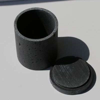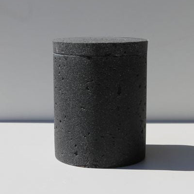 צנצנת עם מכסה Lyon מבית Essentials, עשויה רזין בדוגמת טרוורטין, במראה טבעי שמזכיר אבן וולקנית גולמית. הטקסטורה המחוספסת והעמוקה מעניקה לסדרה אופי ייחודי ועכשווי, בשילוב קווים נקיים שמכניסים תחושת יוקרה מודרנית לכל חדר רחצה.